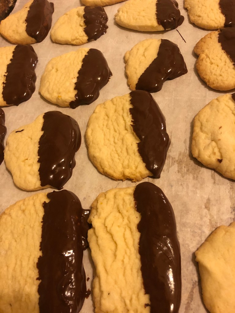 Today, I added a new cookie to my arsenal, Chocolate-dipped lemon cookies. This recipe came from The Washington Post and I have been saving it for the right time to bake. As always, I make my own personal tweak to the original recipe. A distinct lemon scent filled the kitchen as they came out of the oven! The combination of the lemon and chocolate is unexpected, but a perfect match up.