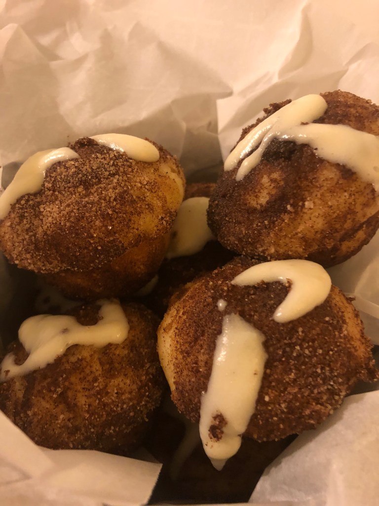 The best part of any donut is by far the hole. This is a baked version coated in cinnamon sugar with a vanilla glaze. It has a light and fluffy bounce to the cake-like batter. Perfect for a dunk in tea, coffee, or a big glass of cold milk.